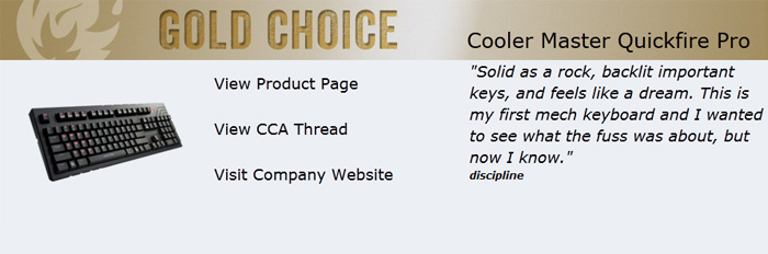 Cooler Master is recently awarded with multiple Community Choice Awards from Overclocker.net including Gold Awards for the CM Storm Stryker and QuickFire Pro.