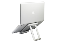 Made out of aluminum to match current Apple products, the stand is lined with soft rubber along the important edges that will touch your MacBook. The front tab holds the computer, and is plenty big to accommodate even an ancient thick Dell laptop. One of the best things about this stand is that it folds flat. Folded, it is about as thick as a internal 3.5in HDD, and can be easily slipped into your computer bag."