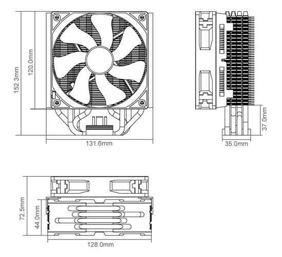 | Heat Sink Dimensions | 128 x 44 x 152.3 mm (5 x 1.7 x 6 in) |