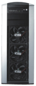 One 120 X 120 X 25 mm Front Blue LED Fan; 1200 rpm, 22 dBA (intake), Two 120 X 120 X 25 mm Rear Fan; 1200 rpm, 22 dBA (exhaust), One 80 X 80 X 25 mm Top Fan; 1800rpm 22dBA (exhaust) |