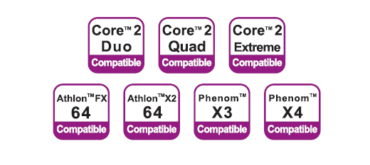 | CPU Support | Intel Corei7 / Core 2 Extreme / Core 2 Quad / Core 2 Duo / Pentium 4 / Pentium D / Celeron / Celeron D AMD Phenom X4 Quad Core / Phenom X3 Triple Core / Athlon 64 x2 Dual Core / Athlon 64 FX / Athlon 64 / Sempron |