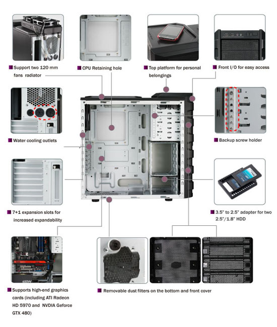 | 2.5" Drive Bay | 2+2 (converted from 5.25" bay) 4 hidden |